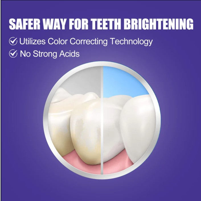 By counter-balancing the different hues in your teeth, conceals stains and improves brightness.